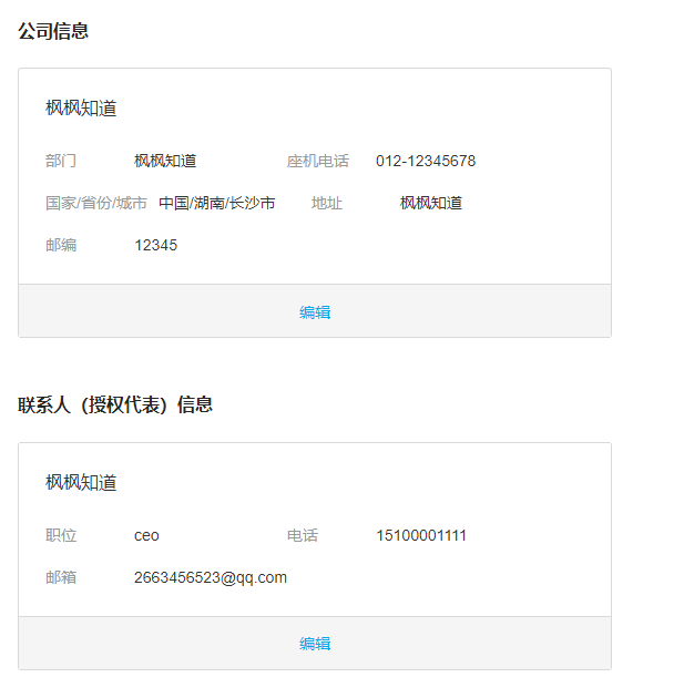 公司信息,和联系人信息,随便写,格式如下