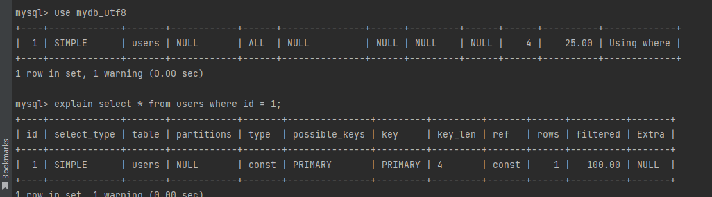 explain select * from users where id = 1;