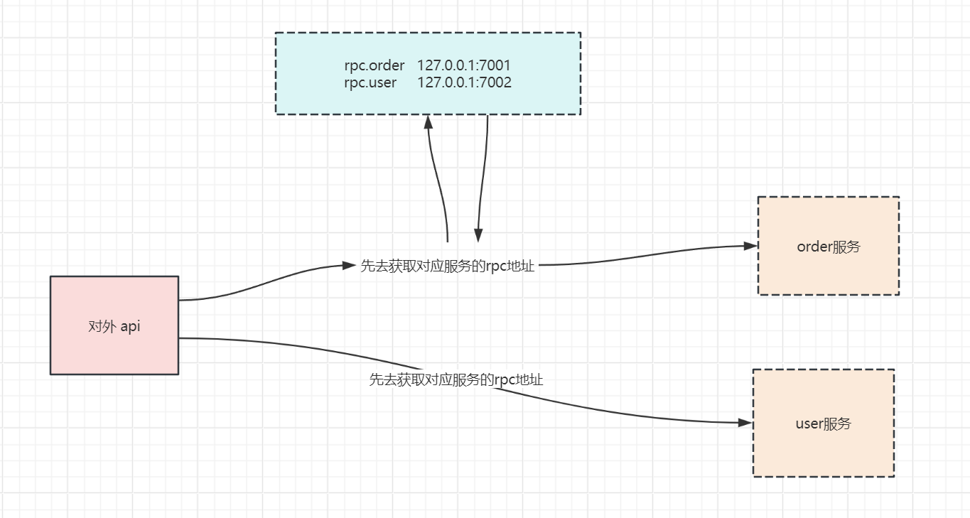 在对外api这个应用里面,怎么知道order服务的rpc地址呢?