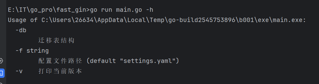 flag.StringVar(&Options.File, "f", "settings.yaml", "配置文件路径")