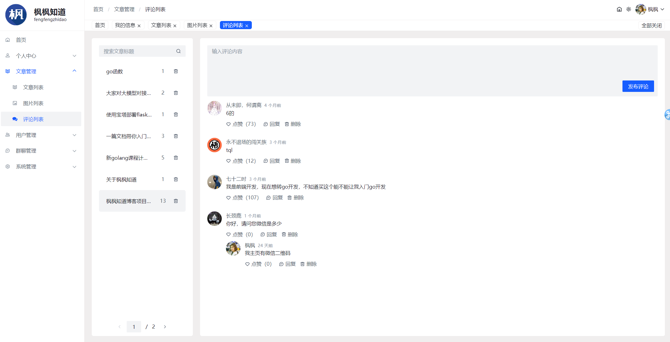 - 文章评论树可以递归展示子评论