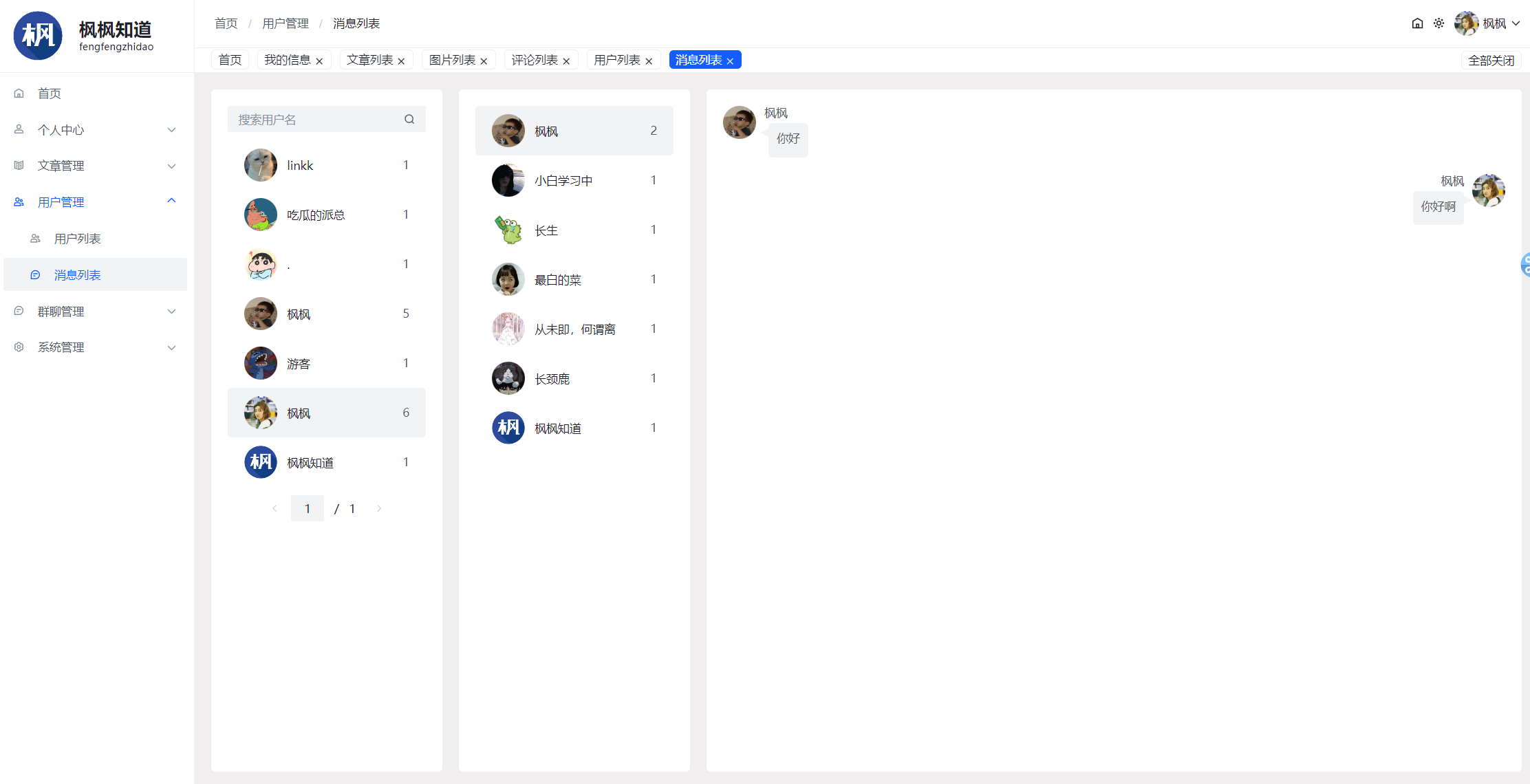 - 用户与用户的对话列表