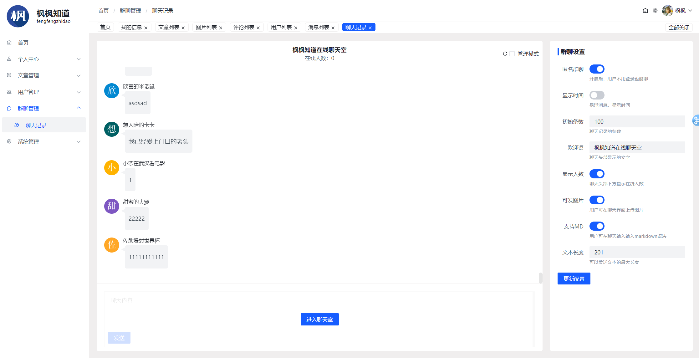 群聊功能,每个用户都可以在群聊中聊天