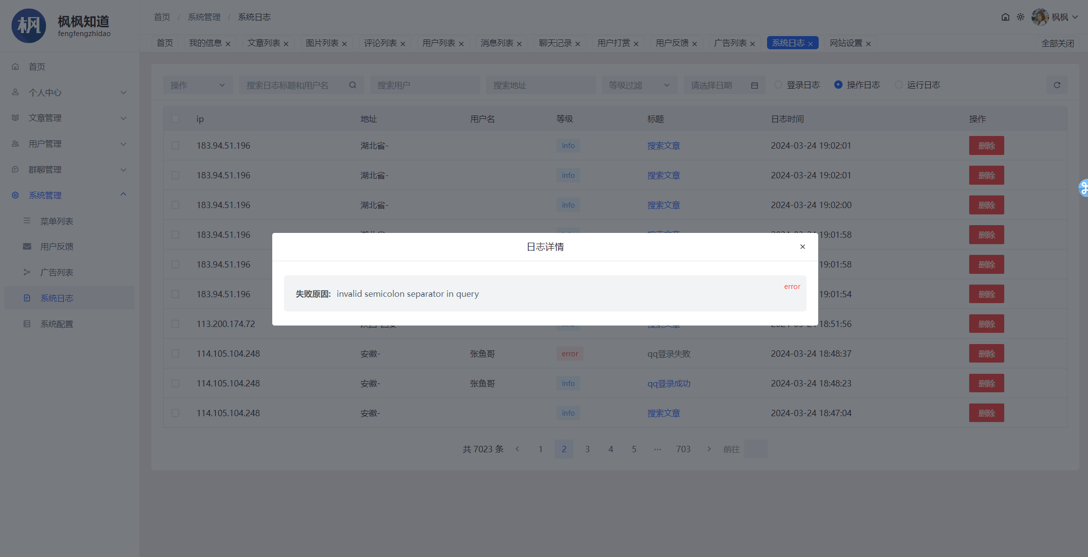系统日志,方便系统管理员查看网站运行情况