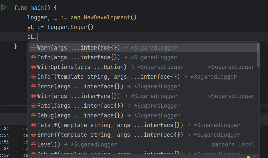 zap库的使用与其他的日志库非常相似。