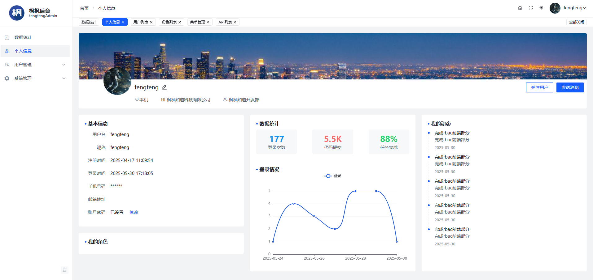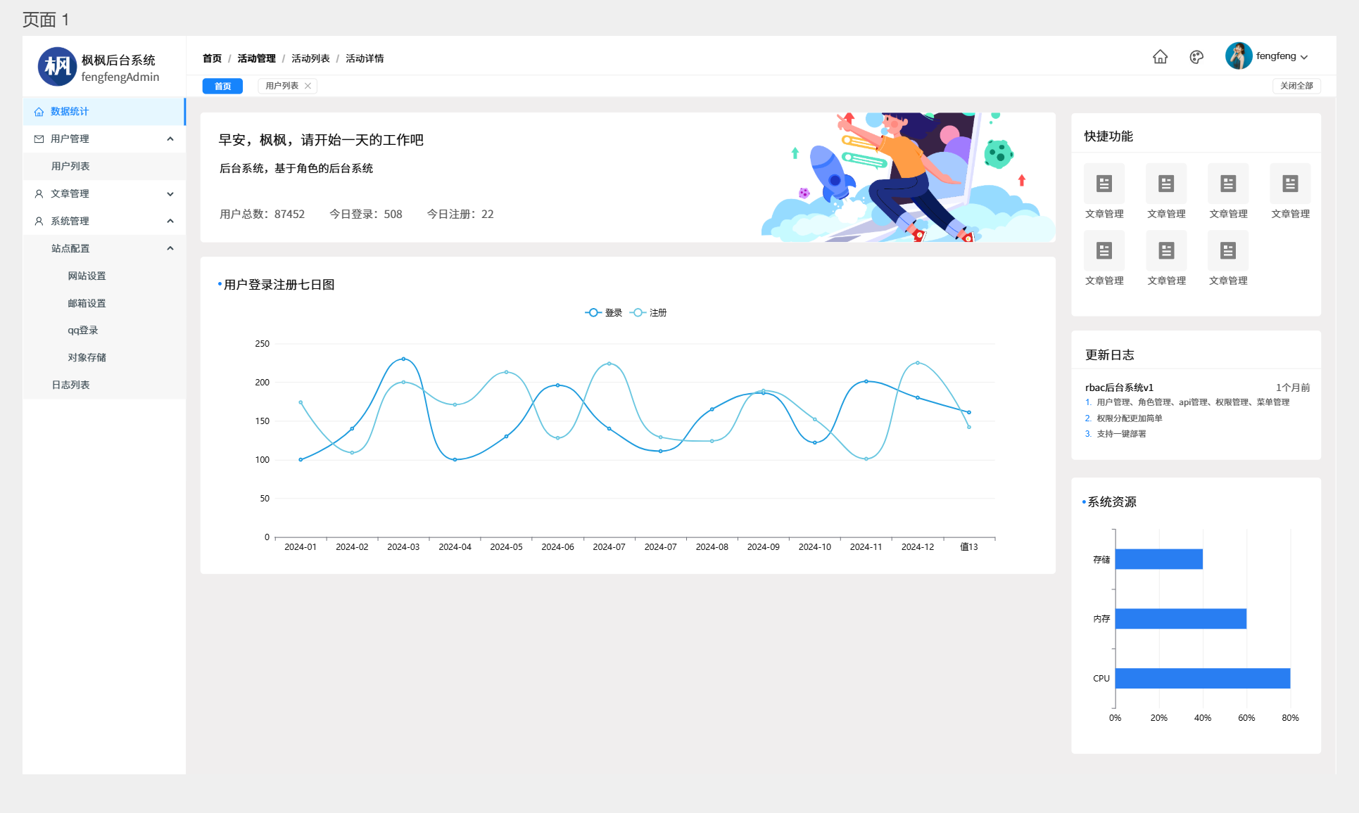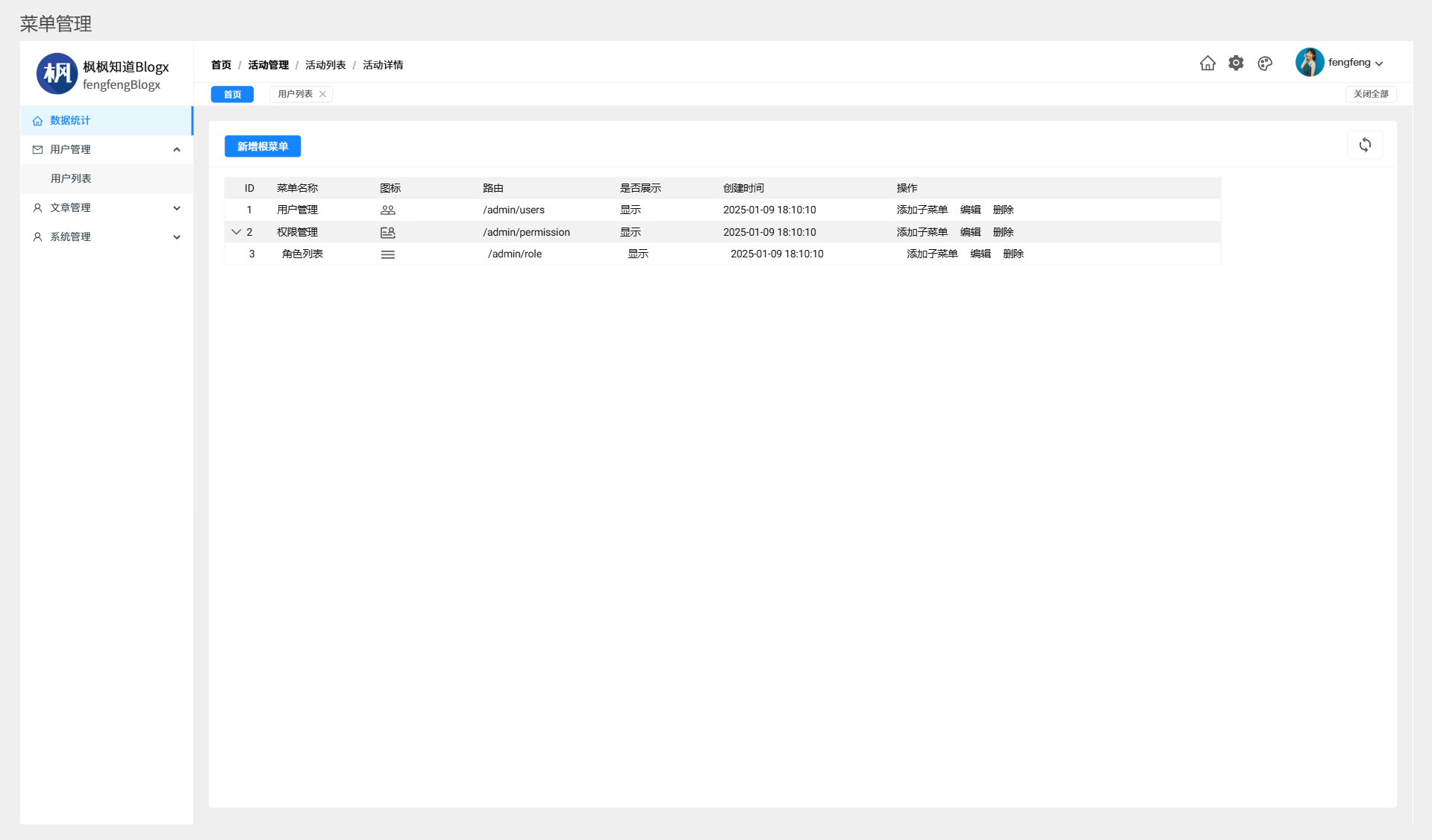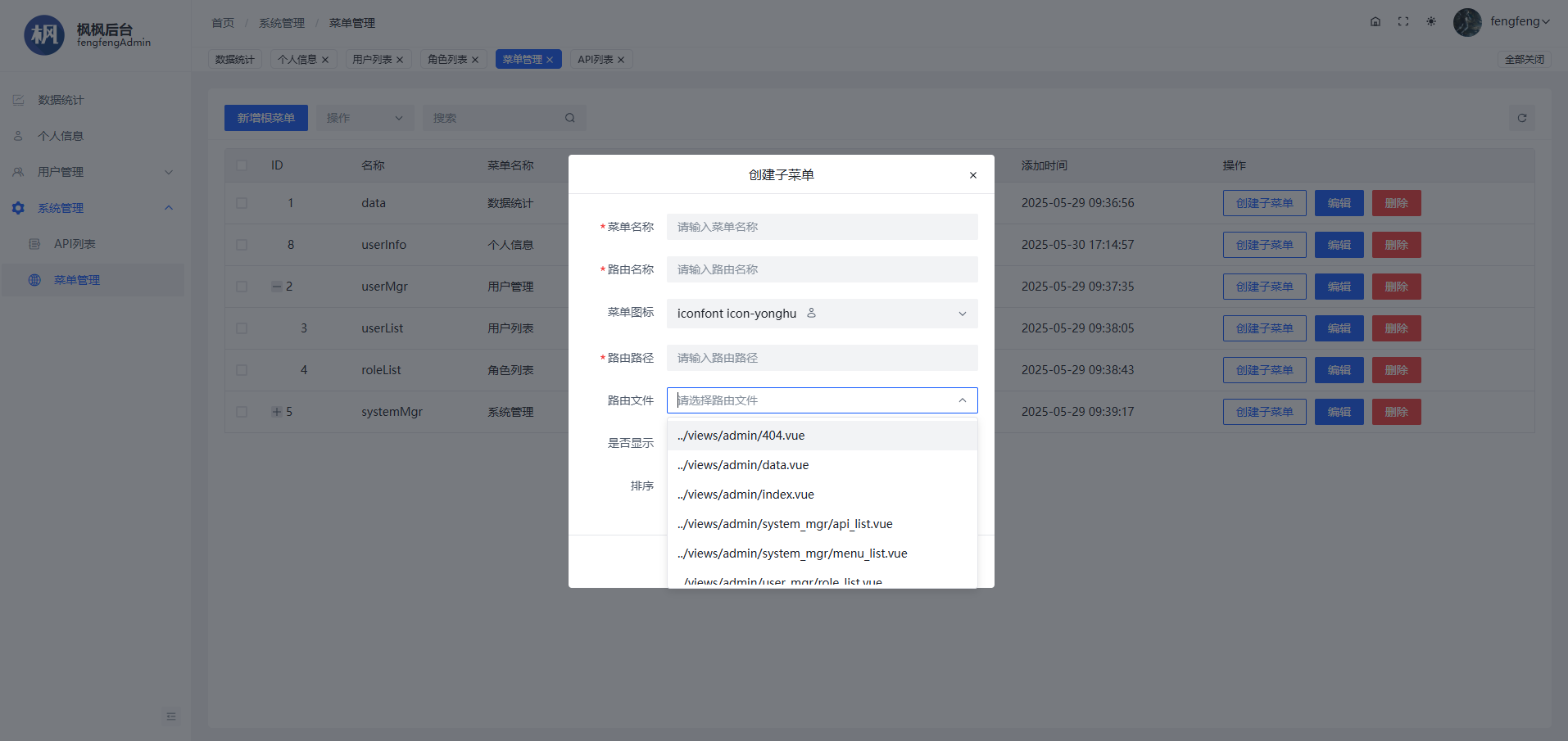 - 智能菜单管理:支持多级动态路由配置,自动生成导航结构