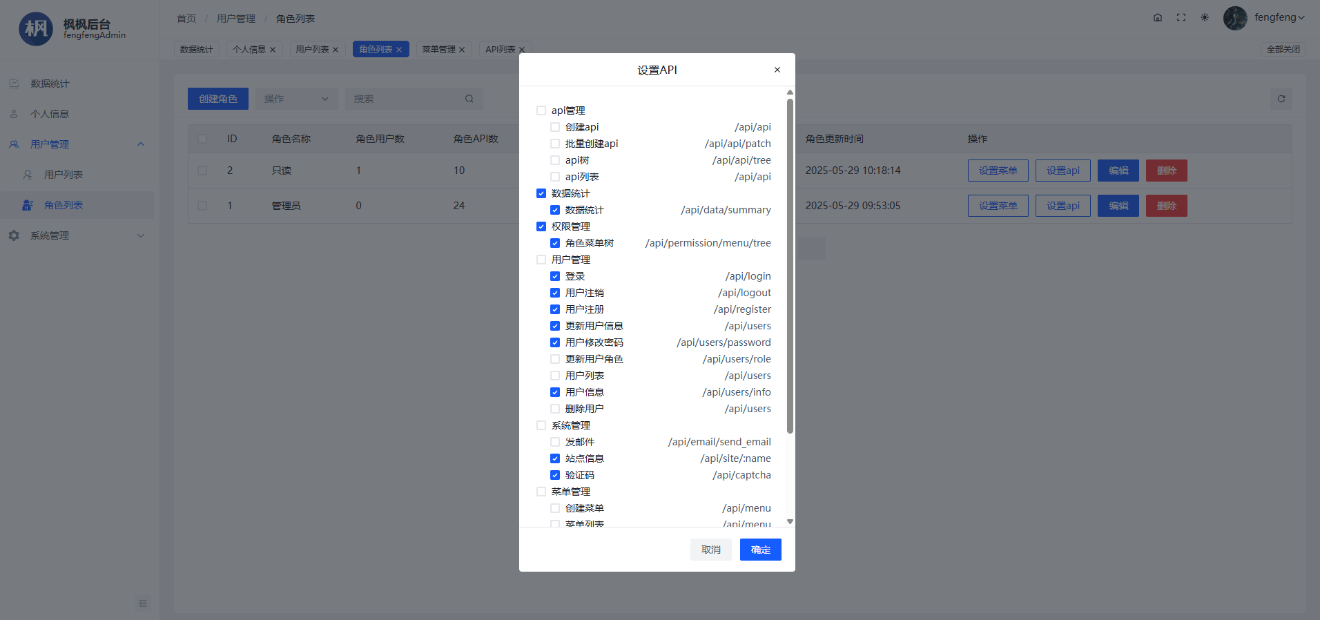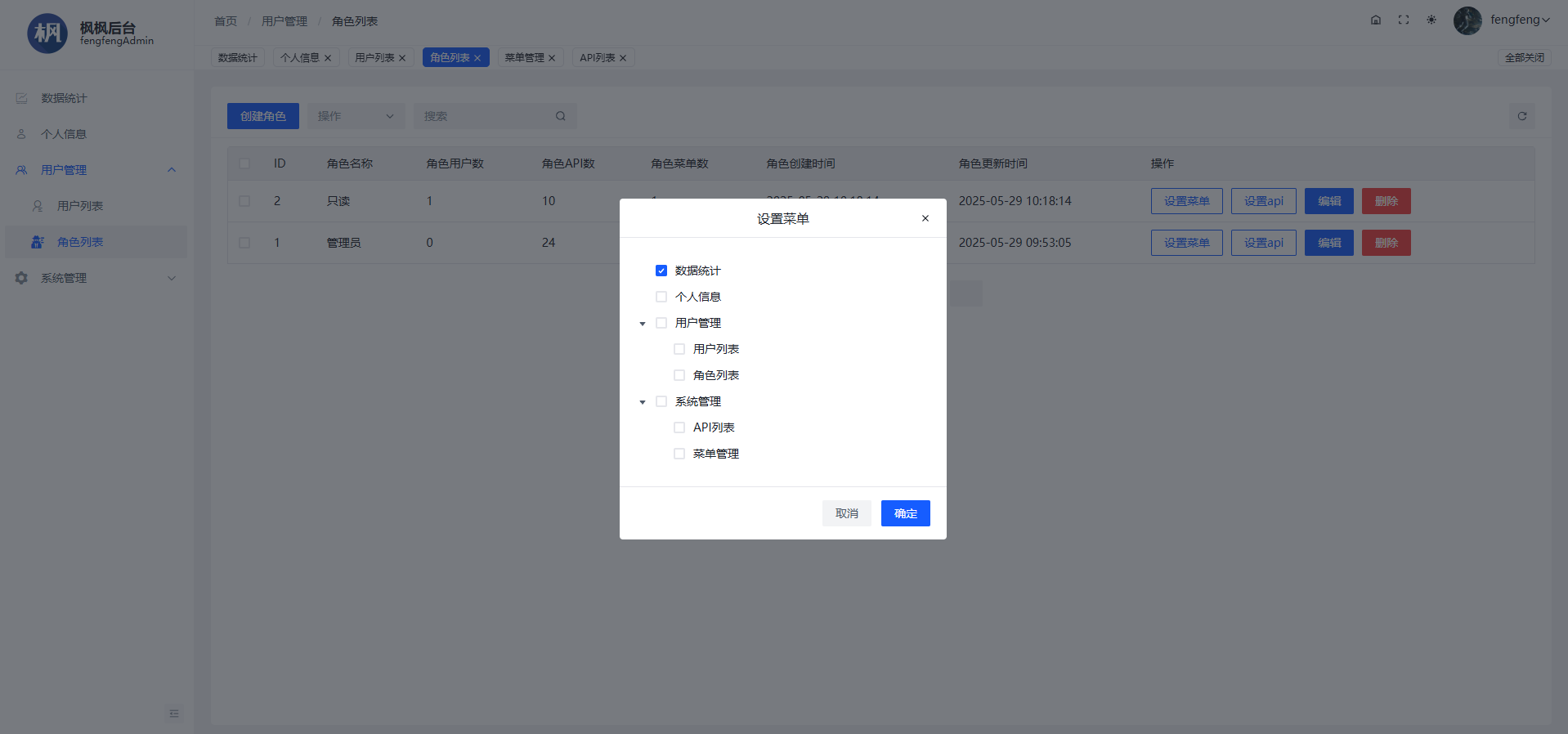 - 可视化角色权限配置:支持菜单权限、数据权限多维度管控