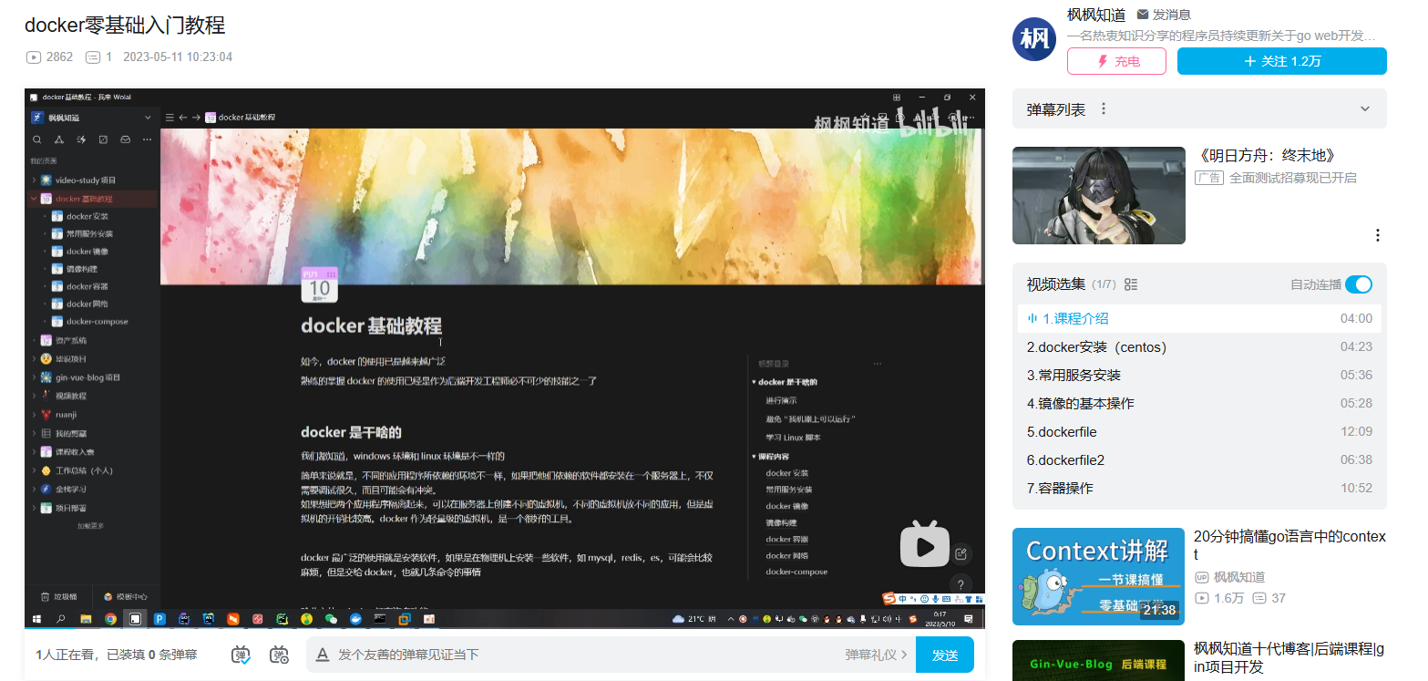 之前我录个docker的零基础教程,是23年5月份的时候