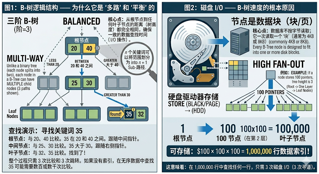 - 实际体感: 哪怕数据量翻了 10 倍达到 1 亿行,B-Tree 的树高度可能只增加了 1 层,查询耗时几乎没有明显变化。
